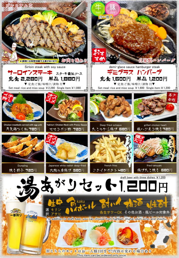 左:ランチ時間専用メニュー 右:(月〜金)日替わりメニュー