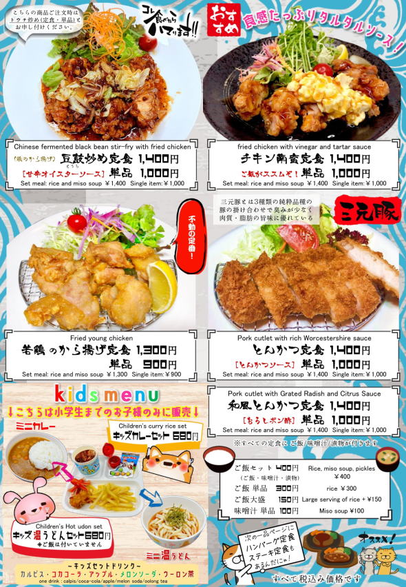 左:ランチ時間専用メニュー 右:(月〜金)日替わりメニュー